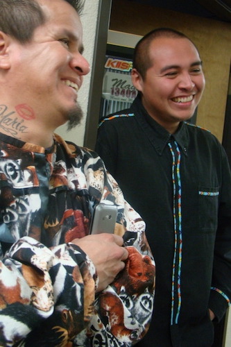 Compa (left) and Cazaq (right) share a laugh while the interview goes on, waiting for their turn on the mic.